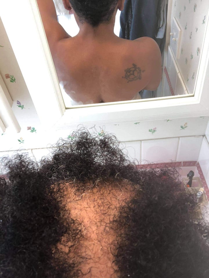 The woman in the picture or who stares back at me in the mirror has nothing to do with hair. Yes, there are weird societal standards for women and their hair, just ask Simone Biles about that. There are not a lot of images of bald women linked to sexiness or attractiveness. She can certainly be seen as edgy, bossy, butch, bitchy, militant, and sick but not often feminine, warm or sexy. I don’t have control over that. I only have control over what I see and that’s why this had to happen.