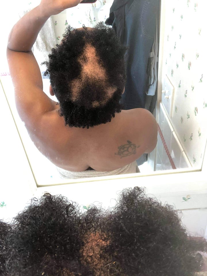 After pregnancy you have what’s referred to as “The shed.” This is a period where all that insulated fur you grew over 9 months, starts to fall right on out. It’s usually moderate but sometimes can be severe (which mine was), then it evens out and you kind of return back to homeostasis. People, including my doctors, kept saying, “Oh, your hair was short to begin with, so it just seems like it’s shedding more.” “Oh, for some women it can last a little longer than the average,” the average being around 4 months; mine lasted 2 years. That’s how old my son was when I said, “Enough is enough.” That’s when I went to the dermatologist, and well..you know the rest.